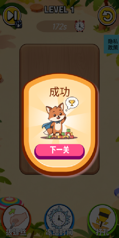2、当你闯关成功才可以解锁出下一关,继续你的拔螺丝之旅。
