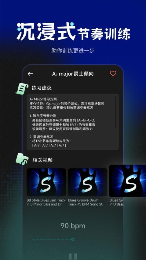 3、节奏训练:支持随时开展节奏训练,观看相关教学视频即可辅助练习,轻松提升节奏感。