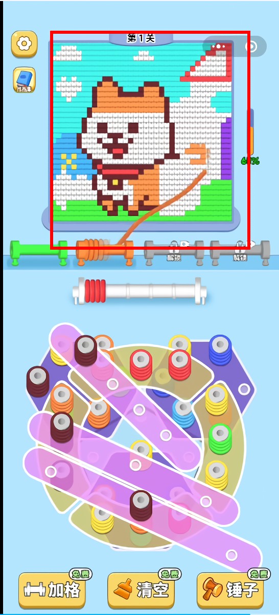 2、完成图案:每个关卡都会给出一个需要完成的图案目标,玩家需要精确地控制毛线的颜色和走向来完成图案。