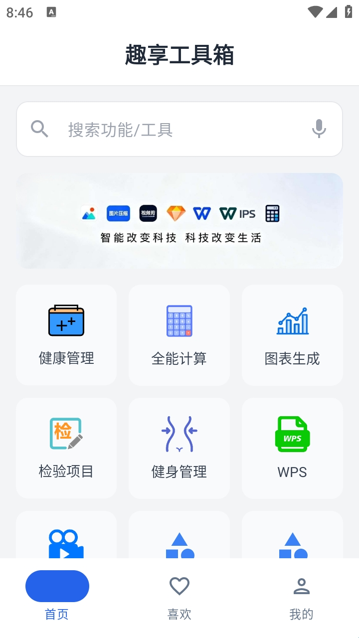 1、打开趣享工具箱APP并进入首页,各类实用工具入口整齐排列,清晰易找;