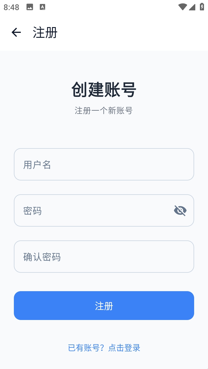 4、按照页面提示,如实填写用户名与密码信息,确认信息无误后点击注册按钮;