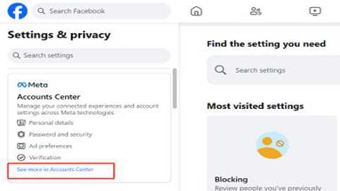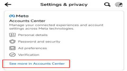 点击“在账户中心查看详情”,然后在“主页”中选择您的Facebook个人档案。