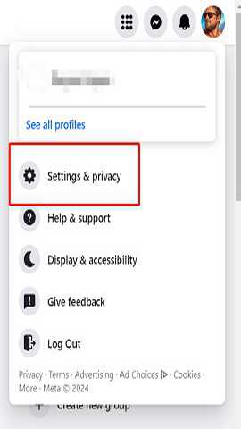 使用浏览器登录Facebook账户,然后点击屏幕右上角的个人头像。