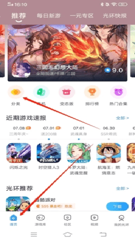 1、进入光环助手APP后,首先点击左下方的“首页”,之后在找到页面中的“分类”,点击进入;