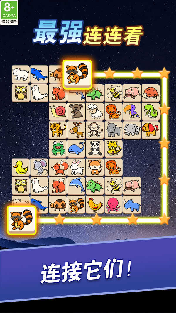 最强连连看游戏是一款非常考验玩家观察能力的消除游戏,游戏中玩家需要点击相同的方块进行连接消除,玩家需要注意的是方块之间必须有合理的路线,没有阻挡才能够消除。游戏中的每一个消除元素设计的都非常的有特点,这为游戏增添了不少的乐趣。