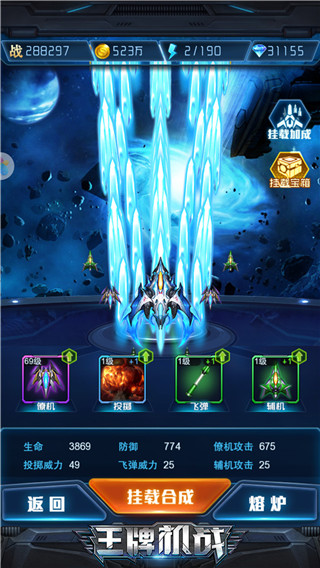 升级进阶、六大装备、四大挂载,更有神器、建造工厂等一众独特的成长系统,不仅塑造能力,更可改变外观及弹幕特效!用双手创造只属于你的王牌战机!