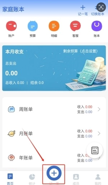3、点击软件下方的+号按钮,即可快速新建账单,记录相关消费或收支。