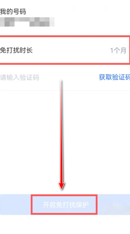 5、选择免打扰时长,然后输入验证码,最后点击开启免打扰保护即可。