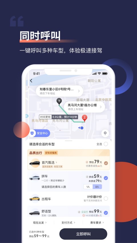 3.一键呼叫多种车型,体验极速接驾;