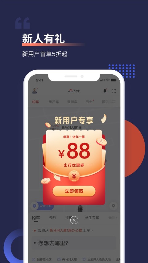 首汽集团开发的互联网约租车平台,为客户提供安全、便捷、舒适的高品质出行服务。