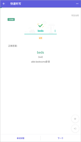 3、 人性化分组记忆:重难单词实时掌握反复巩固,复习遗忘可多次复习,强化记忆效果。