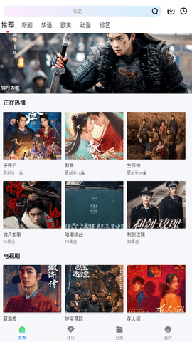 1、进入首页即可轻松追剧,分类还是蛮多的;