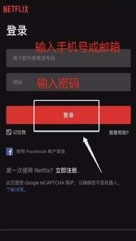 1.打开Netflix,请输入电子邮箱或手机号码、密码,再点击登录。