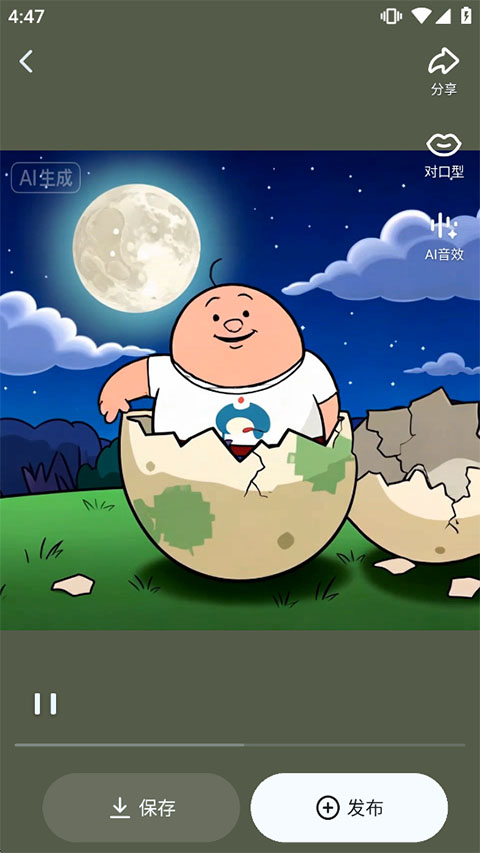 6、最后用户就可以看到刚刚生成的短视频了,还支持快速发布和保存哦。