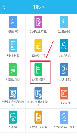 第三步:在【社会保险】页面中,找到并点击【个人缴费记录查询】即可,如下图所示;