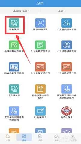 在全服服务界面,点击进入【城乡居保】。