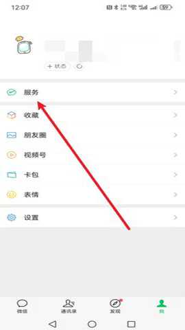 第一步:打开我们的微信,然后在底部的【我】中找到并点击【服务】;