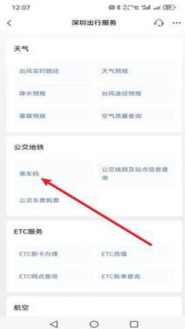 第四步:进入出现页面后,我们下滑找到“公交地铁”选项,再点击下方的【乘车码】,如下图所示: