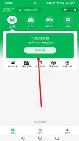 第五步:然后就进入了乘车码界面,如果你是第一次使用会需要开通当地的乘车码,我们在页面中点击【去开通】;