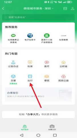 第三步:接着再找到并点击【出行】;