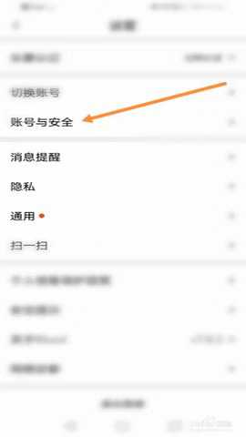 在设置页面中,找到“账号与安全”或类似的选项,点击进入。