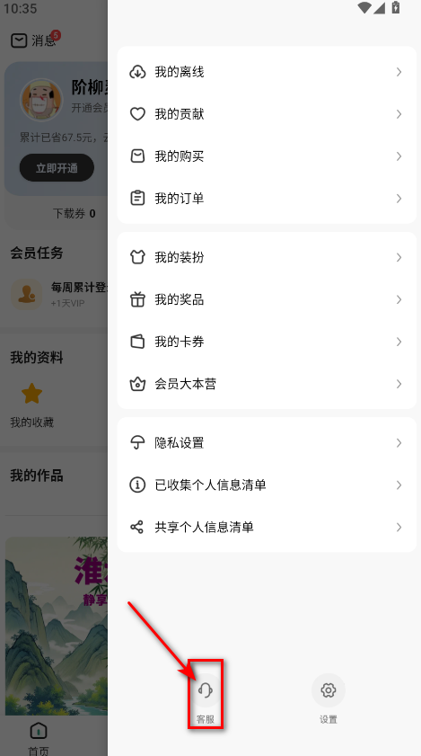 3.接着点击客服按钮