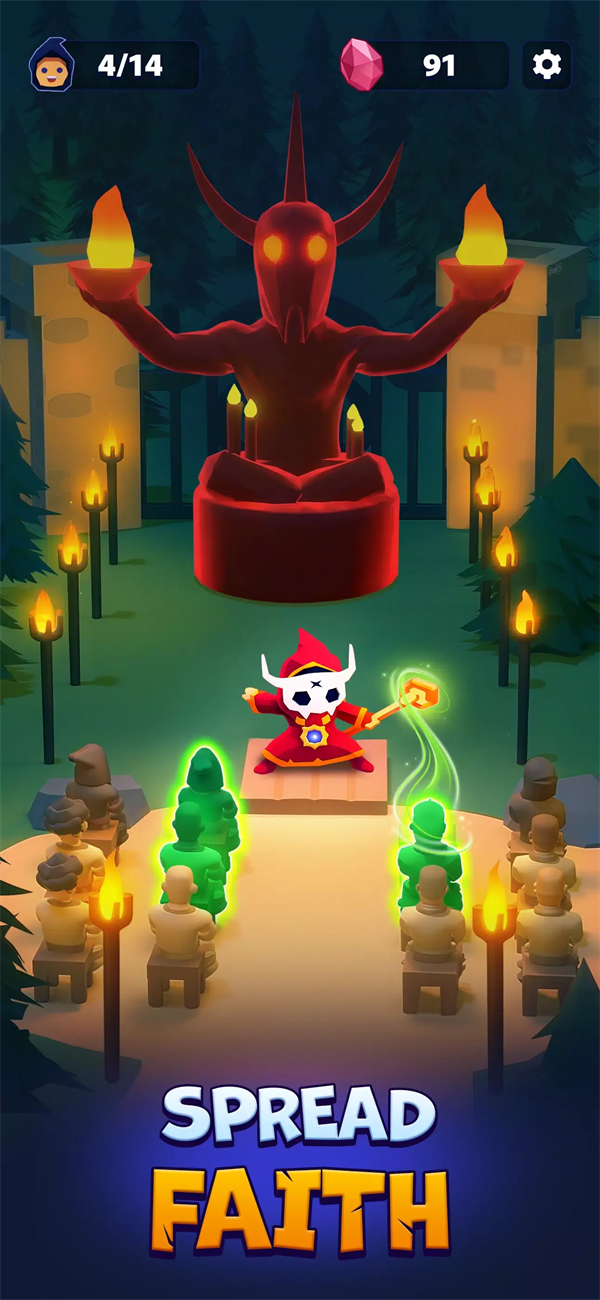 3、管理资源、自动化流程,升级解锁更多的设施,将你的教团发展为繁荣的商业帝国。