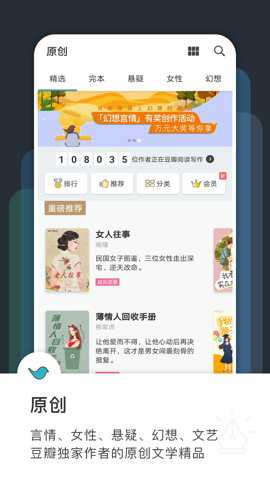 2、如果你想找到一个兼具阅读和创作的社区,豆瓣阅读是一个不错的选择。