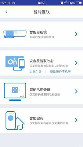 3. 操作控制: 安吉星智联映射可以通过手机app对汽车进行锁门开门、引擎启停等相关操作,界面简洁明了、操作简单易用。