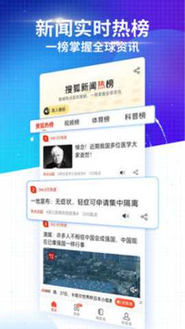 搜狐新闻app是北京搜狐新媒体信息技术有限公司全新研发的一款在线阅读软件,用户通过软件可以实时查看到全国各地发生的新鲜事儿,当前热搜榜实时推荐,不出门也可以了解到最新消息,点击就可以了解最新新闻进展的全貌,给你带来全新阅读体验。