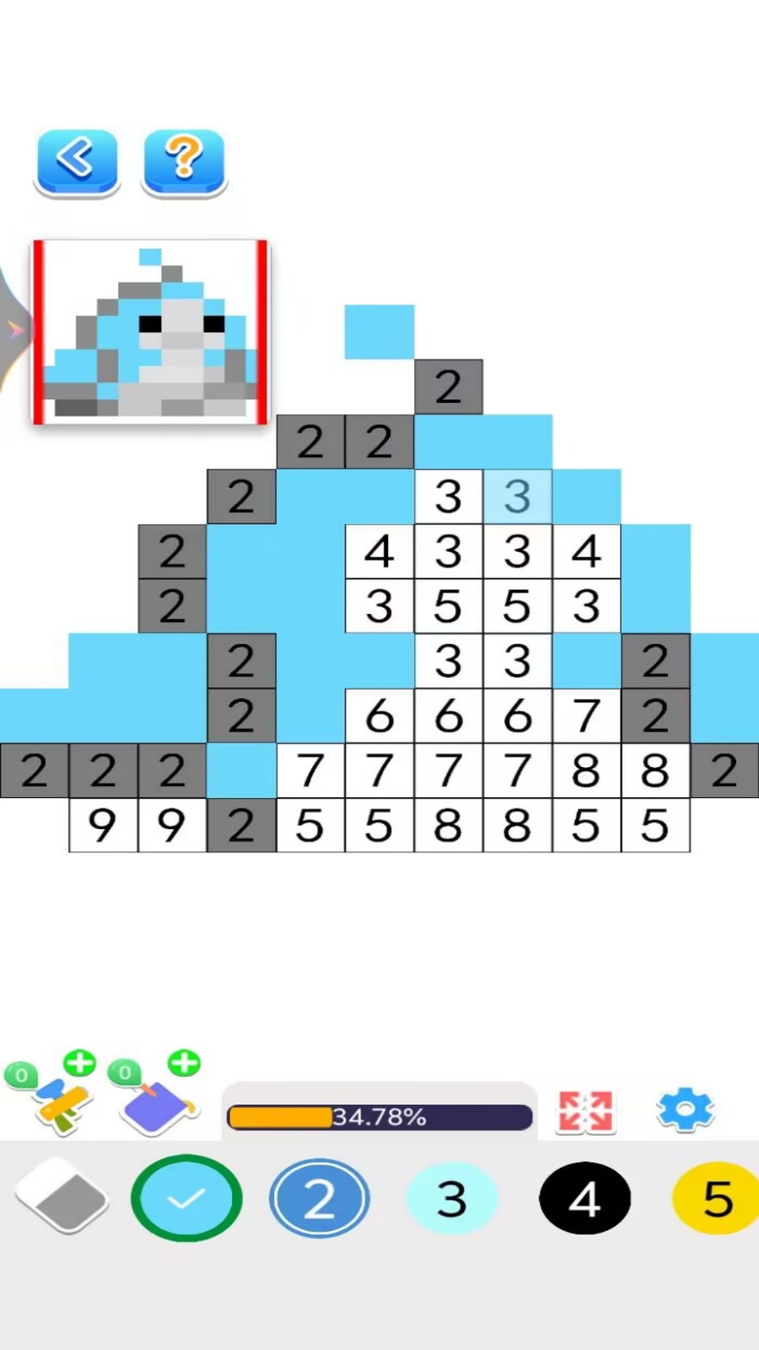 1. 玩家从图案库中选择自己喜欢的未上色线稿,每个图案都被划分为数百个带有编号的微小填充区域。
