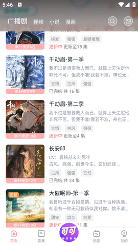 动态漫画专区:可可fm将热门小说章节转化为动态漫画,搭配专业CV配音和背景音乐,打造沉浸式阅读体验。