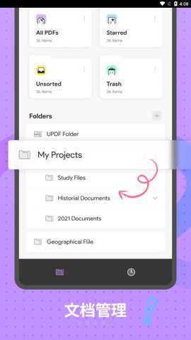 UPDF文件管理是一款赛博爱思(上海)软件科技有限公司打造的全功能的文件管理应用,它能够帮助用户管理最近打开的文档列表。UPDF的文档管理功能非常强大,用户可以创建文件夹以及子文件夹,管理PDF文档,包括复制、删除、收藏、移动、副本等操作。此外UPDF还支持打开已加密的PDF文档。如果用户需要对PDF文档进行注释,UPDF也能够提供相应的功能。
