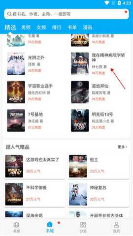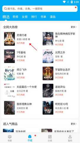 1、首先在本站下载并打开笔趣阁app,进入软件后打开书城即可查看精选、男频、女频、排行、书单、漫画等不同分类的小说和漫画资源
