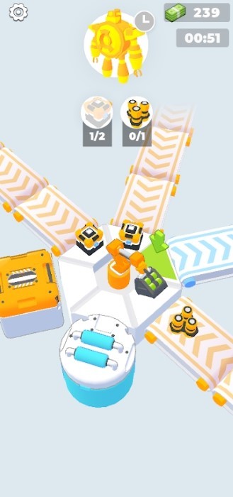 4、根据任务要求从传动带上抓取零件,精准放置到组装区域,完成成品后获得奖励,解锁更多关卡内容。