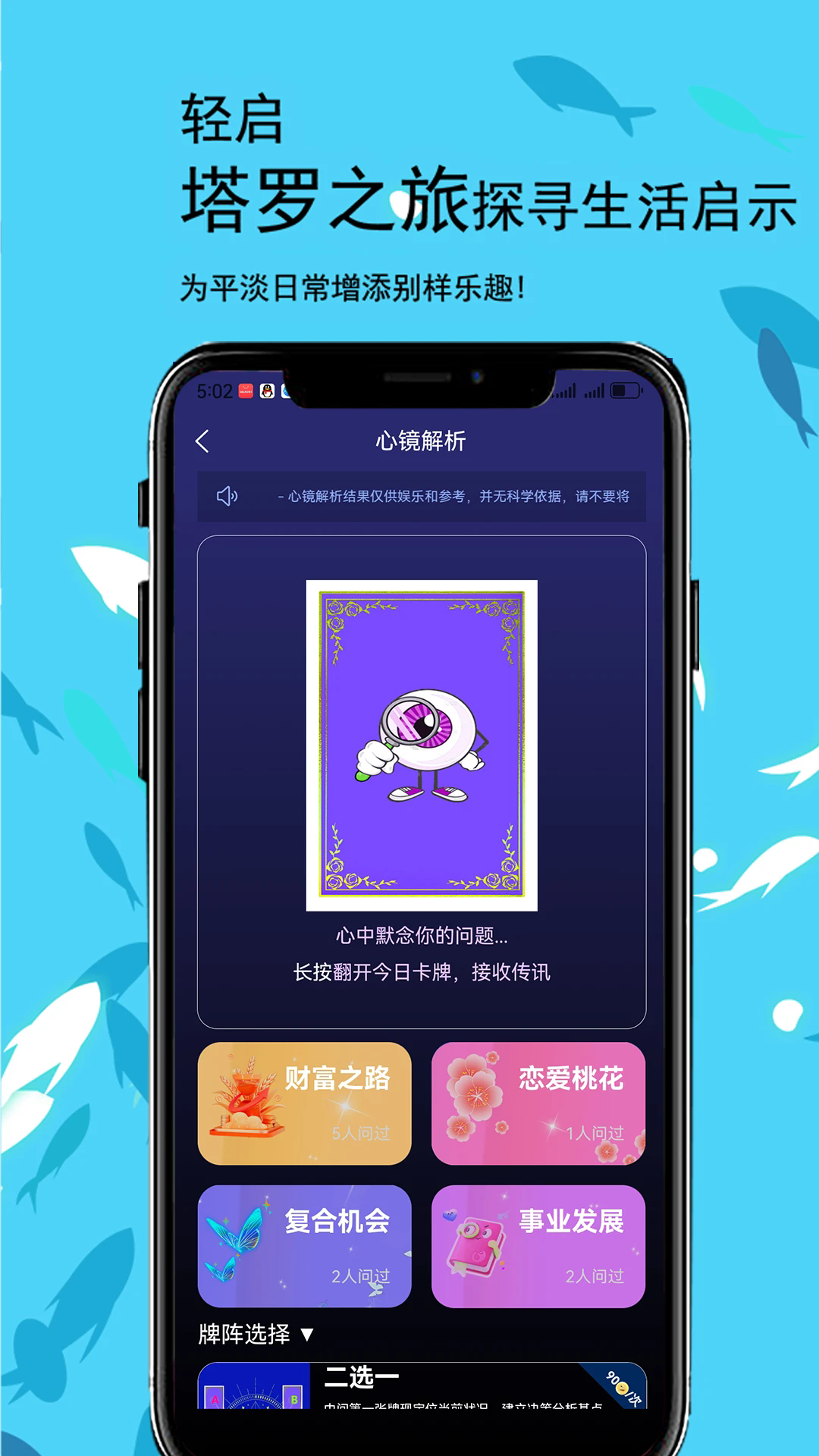 1. 心镜解析(AI解答):利用AI技术深入解析塔罗牌,当用户面临人生的重大抉择,如职业转型、感情问题、学业困惑时,只需抽取塔罗牌,AI便会从专业角度结合牌面进行解读,为用户提供独特的思考方向和启示。