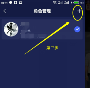 2、进入角色管理界面以后,点击界面右上角的“+”号。进入账号添加界面。