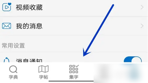 打开以观书法软件,底部点击中间集字按钮,如图。