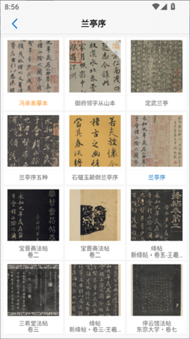 2、选择一个字帖点击进入,比如“兰亭序”;
