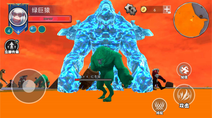3、随着游戏的推进,巨猿的体魄和技能会不断进化,每一次进化都为玩家带来了全新的能力与挑战。