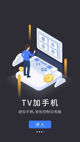 1、同时用户还可以通过TV模式登录,将电视连入云电脑,手机或平板即刻变身虚拟键盘、鼠标和游戏手柄,实现对电视上的云桌面的操作控制。