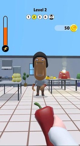 2、游戏中有许多关卡等着你去挑战,手指滑动你的角色便能够继续向前冒险,释放你的手指便能够从你手中扔出一个三明治。