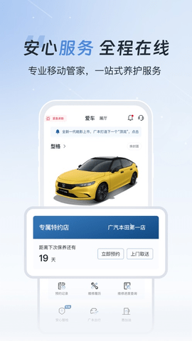 2. 全方位的养车维护服务:通过绑定自己的爱车,在广汽本田App上可以轻松进行养护与维修预约、保险理赔、道路救援等各种服务。这样一来,用户可以更加方便地管理自己爱车的健康状况。