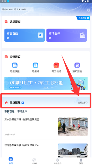 2.在页面内选择市民百姓分类,浏览民生动态。