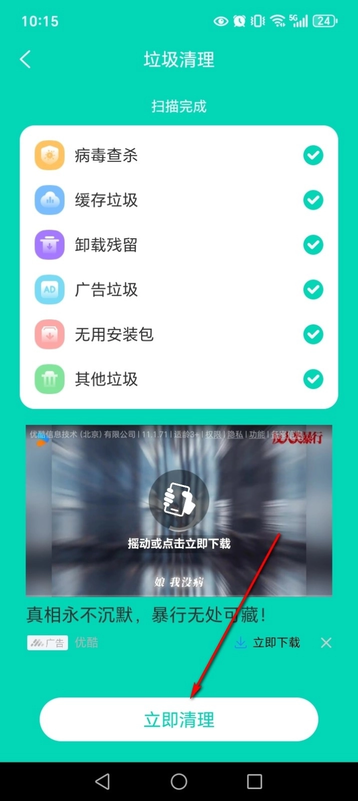 返回软件再次点击【立即清理】开始自动扫描垃圾