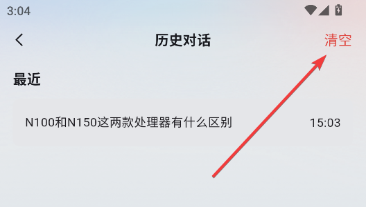2、进入历史对话界面,点击右上角的按钮清空全部对话
