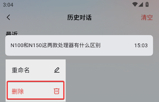 3、长按单个对话可以删除单条对话