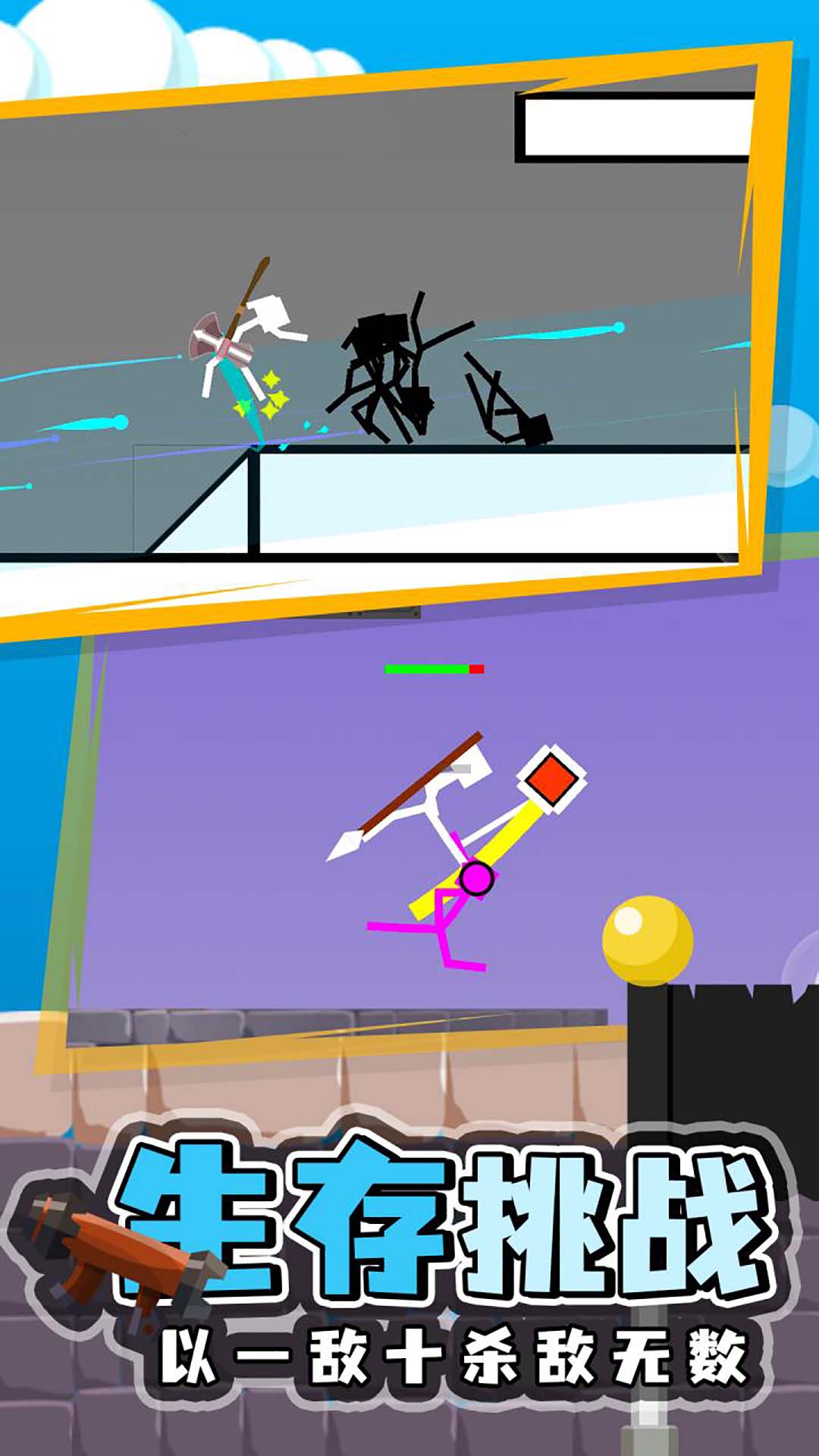 1.人物:各种不同的经典火柴人物供玩家自由选择,玩家可以选择自己喜欢的火柴人物来游玩;