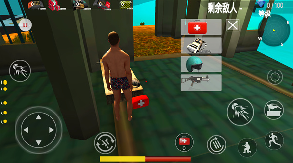 3、游戏下方是当前玩家们的血量,玩家们生存在游戏画面后移动到道具面前,玩家们可以拾取各种道具,武器,医疗包游戏里玩家们可以自行设置游戏里的图形质量;