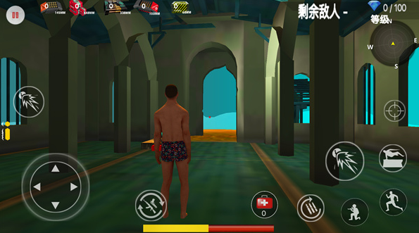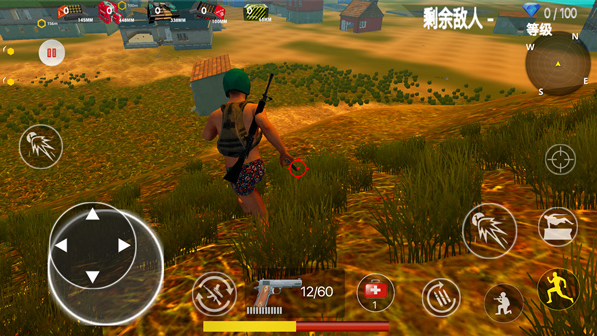 2、点击开始玩家们就可以游玩啦,游戏画面十分有趣,左边控制玩家们前进或者是后退,右边控制玩家攻击,疾跑,下蹲,跳跃,换弹,瞄准等等;